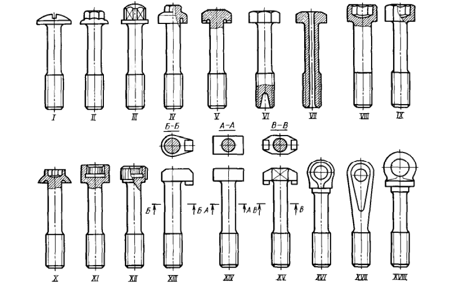 Производители предлагают болты с различными типами головок. Изделия различаются функционалом, особенностями монтажа и геометрией.