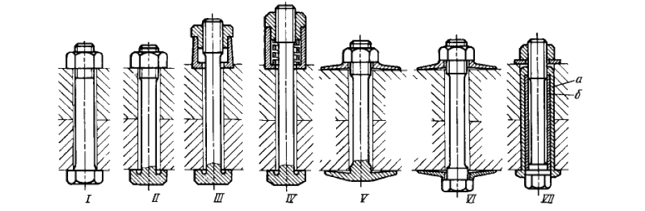 • Жесткие. Крепежные элементы с диаметром стержня равным диаметру резьбы. Как правило, это короткие малонагруженные болты, применяемые в сооружениях базового уровня.