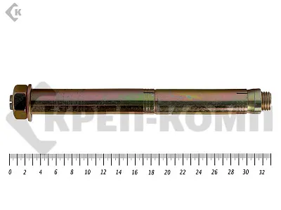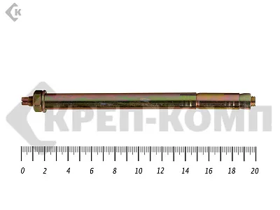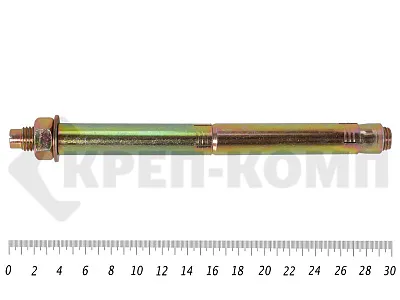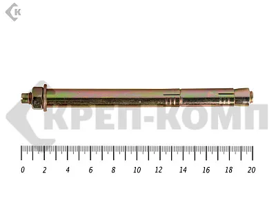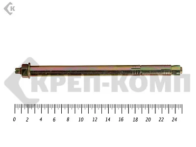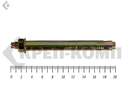 Анкер двойного распирания изготавливается из желтопассивированной углеродистой стали. Двухраспорный анкер используется, когда требуется повышенная стойкость при нагрузках на вырывание. Конструкция имеет две распорные зоны.