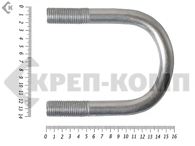 Хомут U-образный представляет собой изогнутый по определенному диаметру трубы стержень, концы которого снабжены метрической резьбой. Предназначен для фиксации труб при монтаже коммуникационных сетей. С его помощью можно производить эффективное закрепление к рабочему основанию стержней, электротехнического силового кабеля и прочих изделий круглого сечения. Жесткая фиксация реализуется за счет затягивания гаек на резьбовых концах стержня.