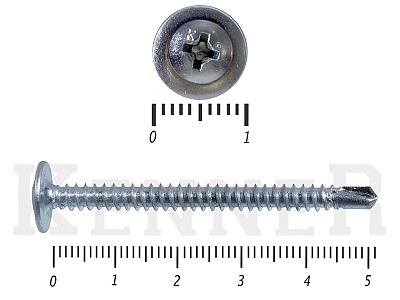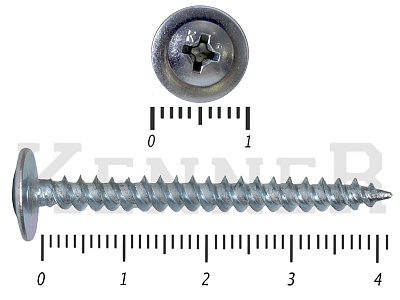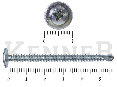 Данные саморезы имеют плоскую шляпку с шлицом под насадку Ph2. Они делятся на две основные группы: